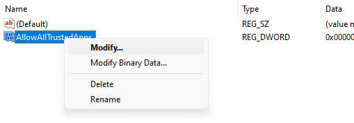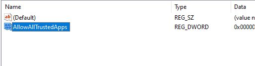 STEP 4c: Name the new DWORD (32-bit) Value: AllowAllTrustedApps, click Enter NOTE: If this key already exists, move to the next step