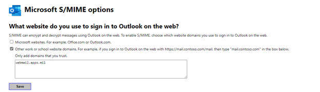 Step 9: Type webmail.apps.mil and press the Save button
