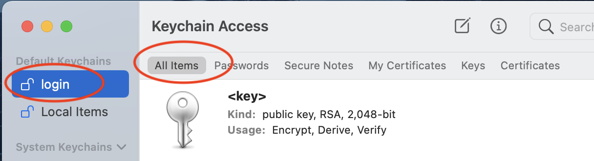 NOTE for Mac OS Big Sur, Catalina, Mojave, High Sierra & Sierra users, if you have attempted to access websites using the built in Smart Card ability in Mac OS, (example: did not install CACKey, Centrify Express, or PKard), then in the Kind column look in the Certificates area for the entire web address. This is what you will remove because the built in does not enter in the Identity Preference area.