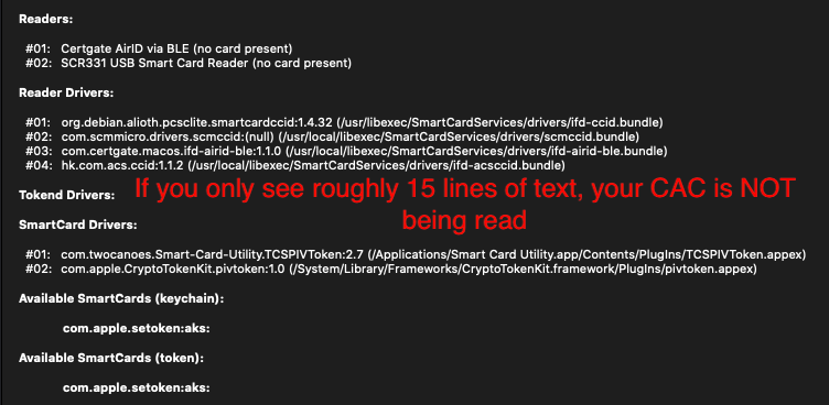 Example of CAC not being read. You'll only see roughly15 lines of text.